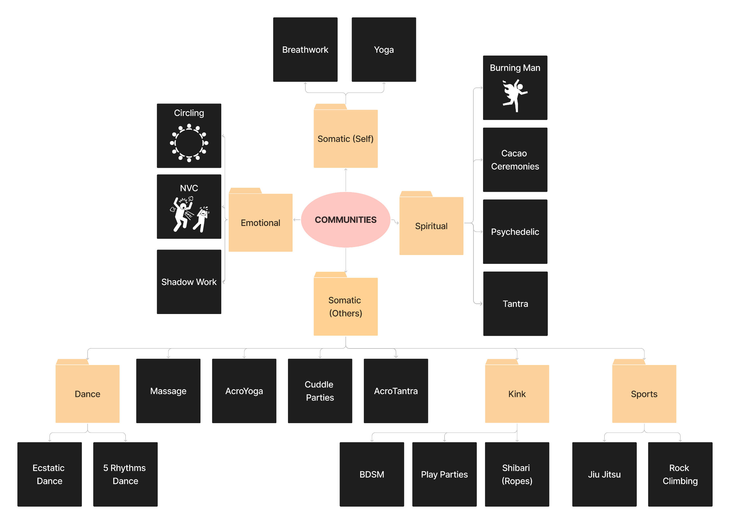 Workshops: Our focus is on providing workshops that help you explore somatics, like AcroYoga, cuddle parties, and dance